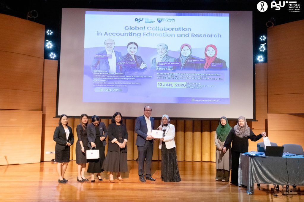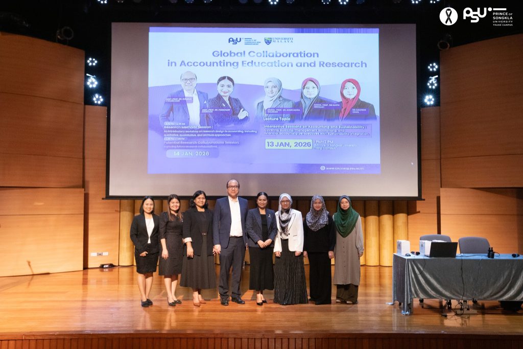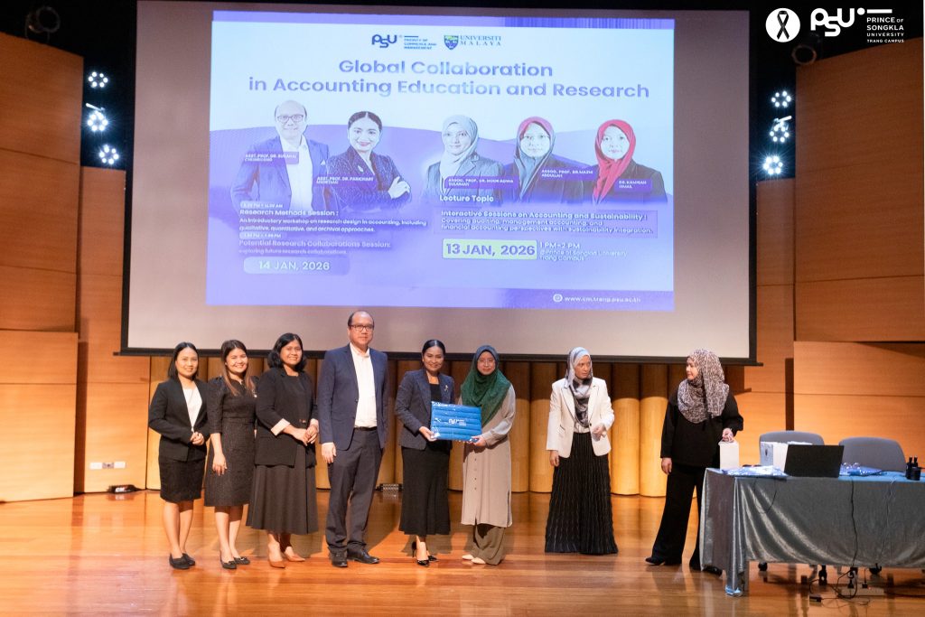 หลักสูตรบัญชีบัณฑิต คณะพาณิชยศาสตร์และการจัดการ มหาวิทยาลัยสงขลานครินทร์ วิทยาเขตตรัง รุกเข้มสร้างความร่วมมือทางวิชาการระดับนานาชาติ โดยกําหนดให้ “การสร้างความร่วมมือด้านงานวิจัย” เป็นหัวใจสำคัญของโครงการสัมมนา ร่วมกับ Accounting Department, University of Malaya (UM) ประเทศมาเลเซีย ระหว่างวันที่ 12–15 มกราคม 2569
